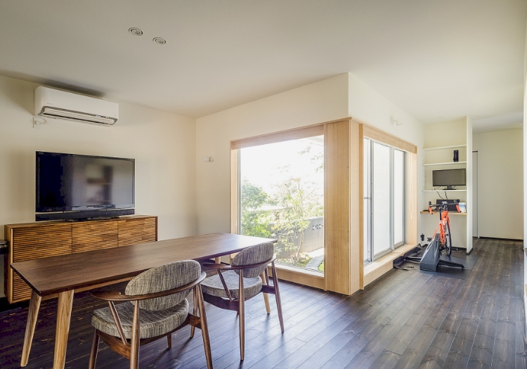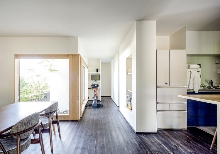 仕切りがないことで開放的な空間も生まれ、奥のスペースからもお庭の緑を楽しめます。