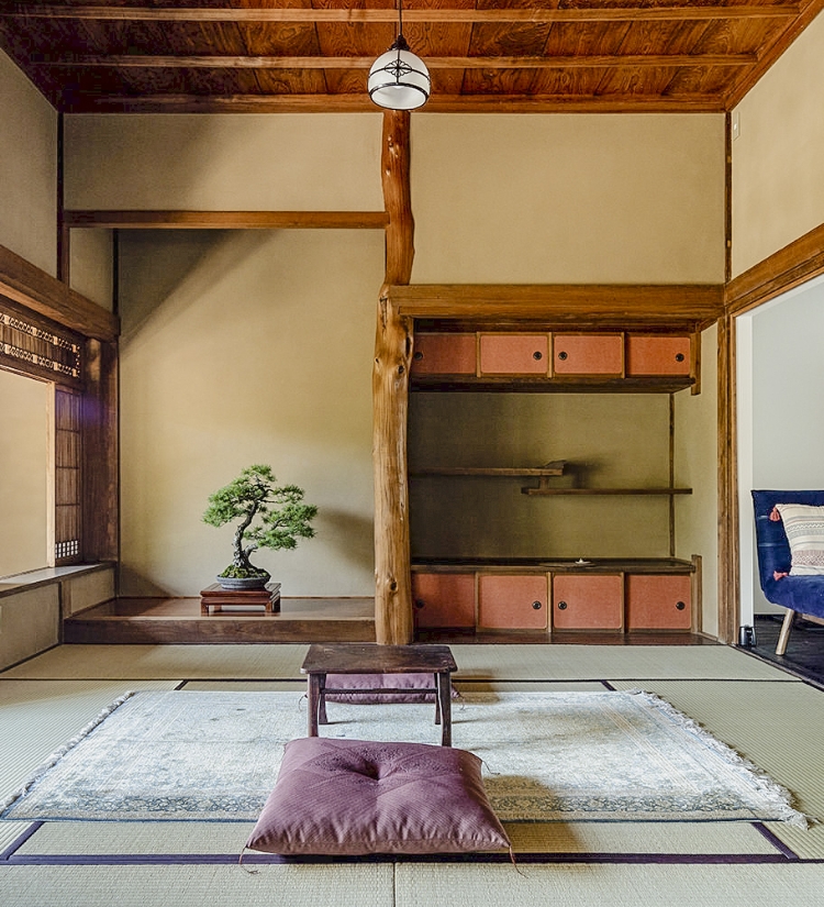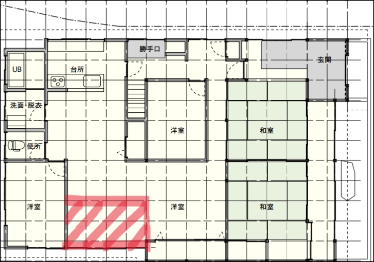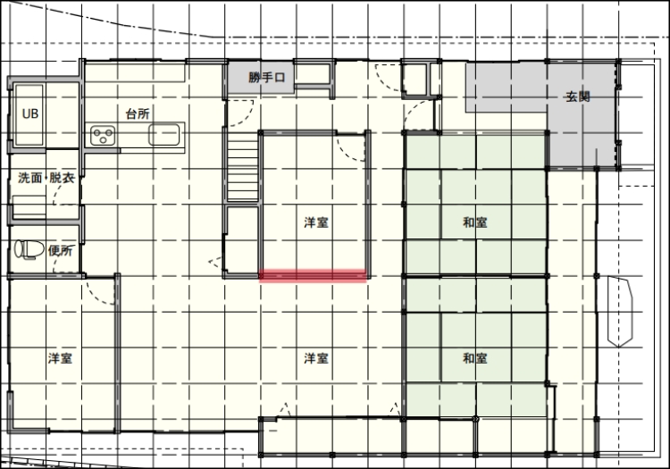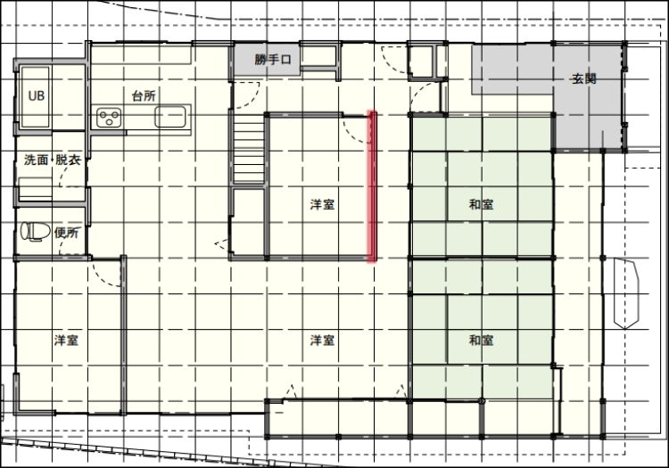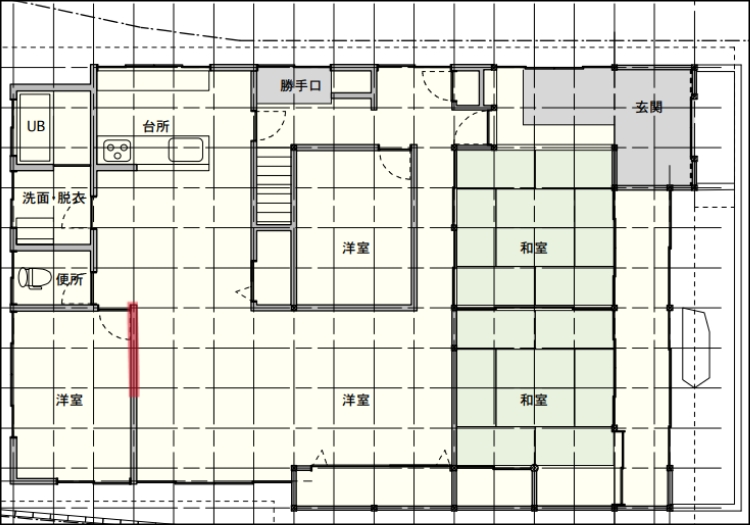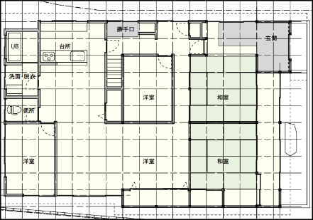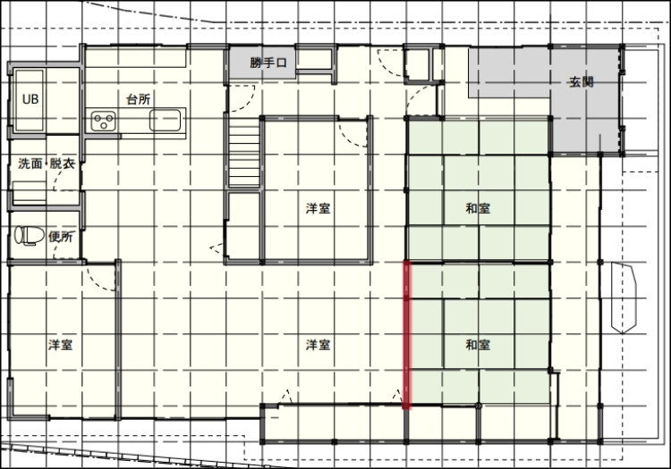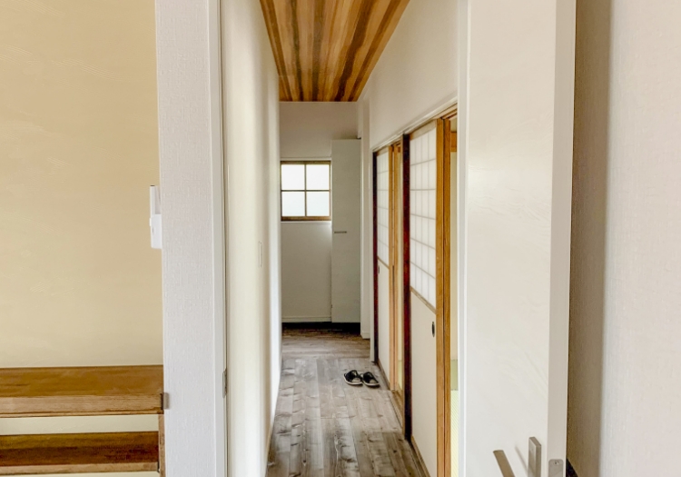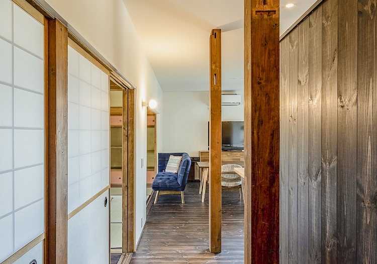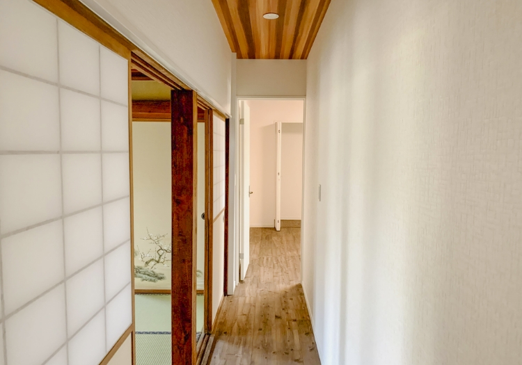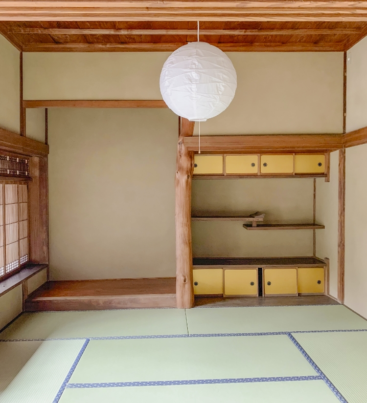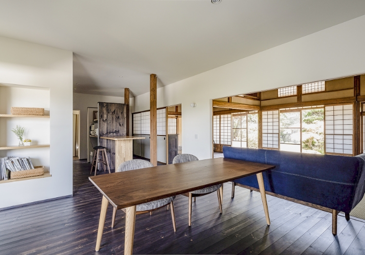 和室の間の壁をマイナス二方向からの採光で明るく、動線もよくなりました。