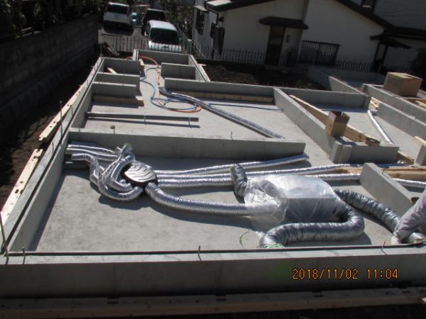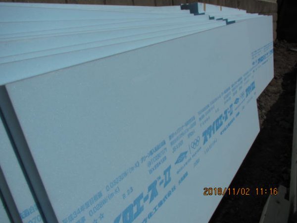 この換気システムの力を充分に発揮するためには、基礎断熱をしっかりしておく必要があります。弊社施工の物件も、スタイロエースという断熱材や気密テープ等でしっかり基礎断熱しておりますよ。