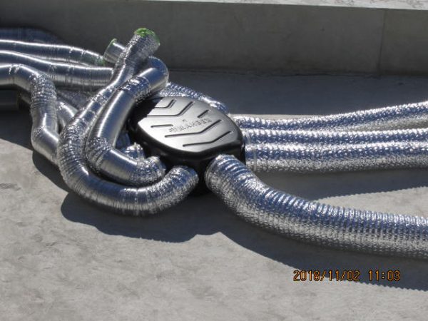 正解は、弊社施工中のお宅の基礎の中に設置されている、換気システムの部材なんです。