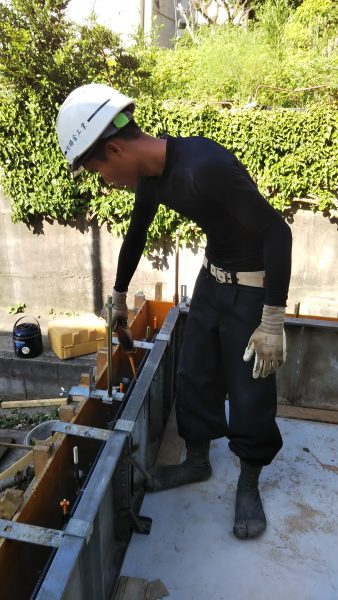 これから基礎の立上り部分にコンクリートを打設する作業に入ります。