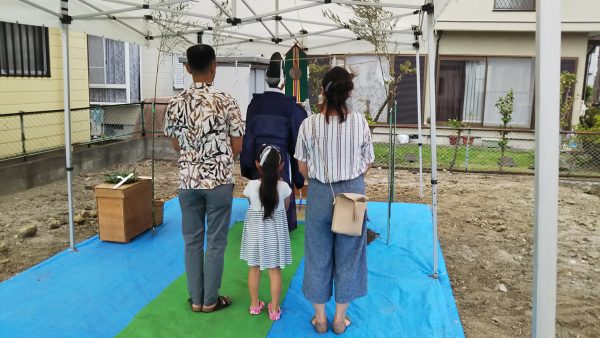 ご夫婦と可愛いお嬢様二人の新しいお家づくりも、いよいよ目に見えるカタチになっていきます。H様、地鎮祭誠におめでとうございます!