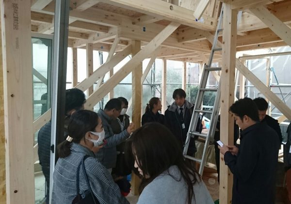 先日、関東・東海地域の工務店の方々が、弊社の現場を見学にいらっしゃいました。同業他社の皆さんと、日々の現場の品質向上のため、『品質管理プロジェクト』を立ち上げ、研修会などを企画しております。その一環として、弊社の現場見学会を開催し、お互いに意見交換など、有意義な時間を過ごしました。