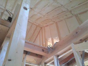 壁内に断熱材をいれると、柱と断熱材の間に小さな隙間ができ、温度差によって結露ができる場合があります。