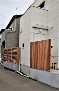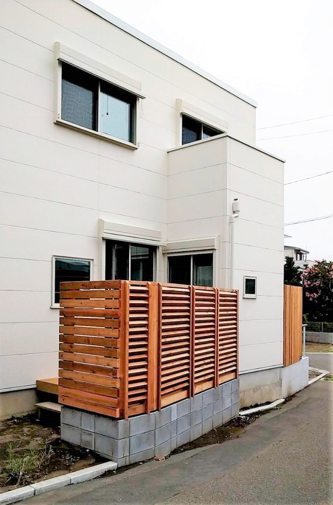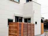 ルーバーフェンスの内側は、ウッドデッキになっています。