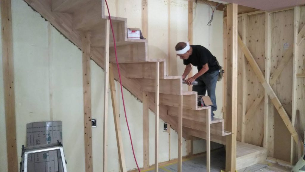 藤沢市で工事中の現場から、とてもスタイリッシュな階段の施工風景をご紹介いたします。
