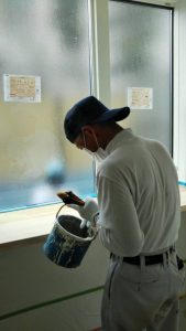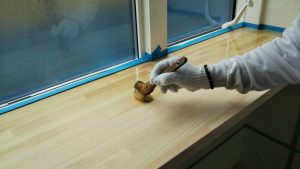 こちらは今、クリア塗装をしているところなんです。家事室のカウンターを塗装しています。