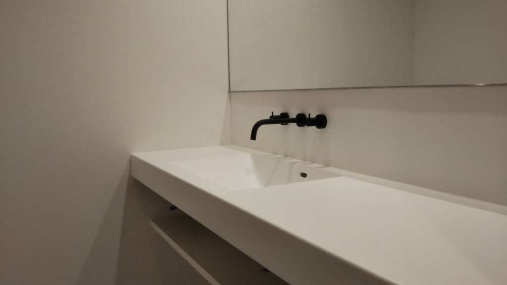 白の発色も上品で美しく、カウンターとボウルの一体感がなめらかな仕上がりです。