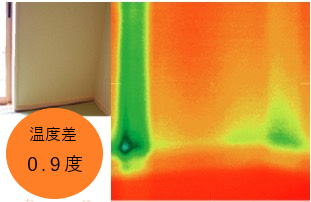 もう少し細かく説明しますと、一般の断熱材の場合、断熱材と構造材(柱・土台)のわずかな隙間から空気の流れが生じてしまい、温度差が大きくなってしまいます。ですが、フォームライトSLの場合、泡状のマシュマロ断熱が構造材(柱・土台)に接着するため、隙間が出来にくく、空気の流れを極力抑えているため、温度差が小さくなっているのです。