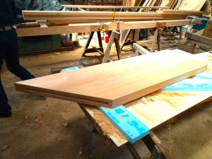このような技術で無垢材のねじれるという特性を制御し、接合部の強度も上げ、ステキなカウンターを施工しています。