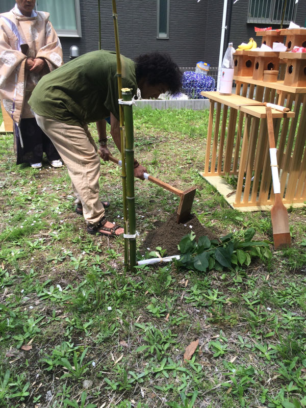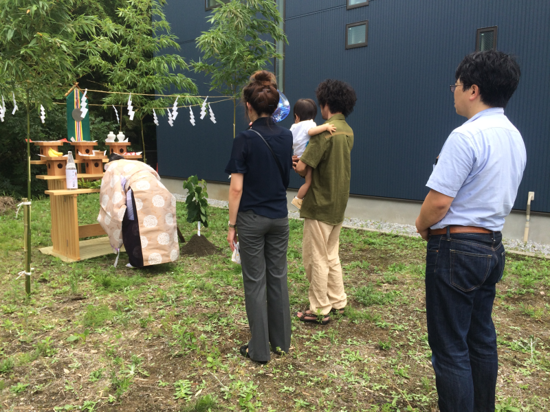 みんな汗だくになっていた地鎮祭最中は、O様のお子様もとてもよく頑張っていました。