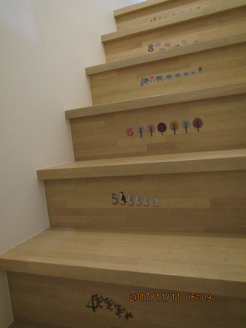 我が家は息子の数字学習のために、階段の蹴込み(踏み板と踏み板との間の垂直部分)