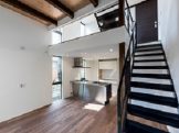 スキップフロアの壁の一部にはガラスがあしらわれており