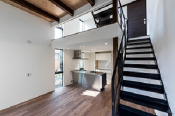 中二階と一階リビングでは、一日を通して自然な陽光の行き来が…*・・*・・*