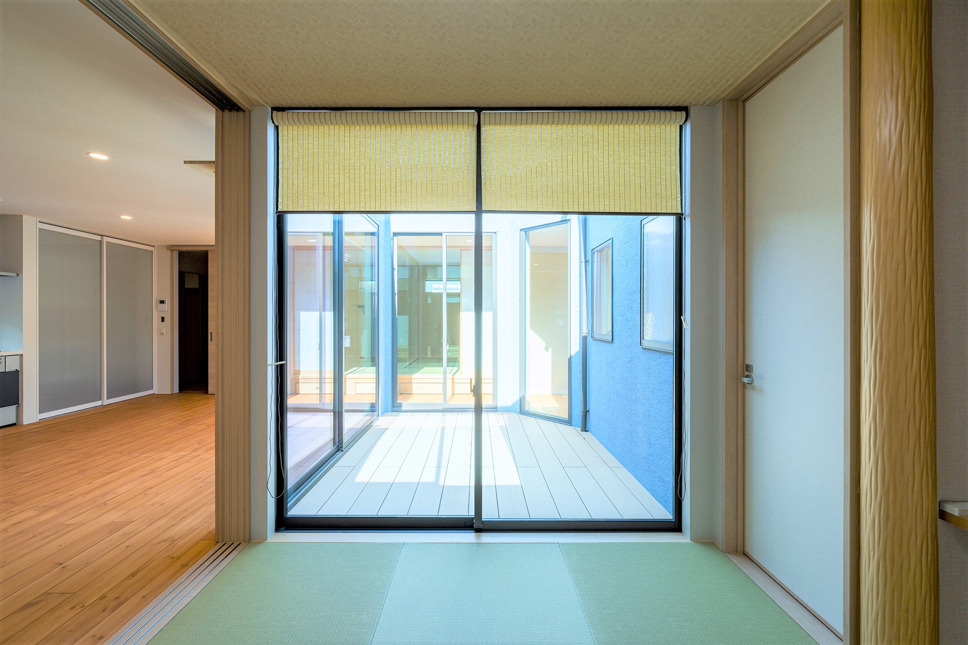 例えば、リビングダイニングキッチンの一部に中庭があり、その中庭の向こうに