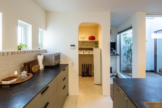 大型家電や食材などは広々としたパントリーへ。生活感を極力おさえています。