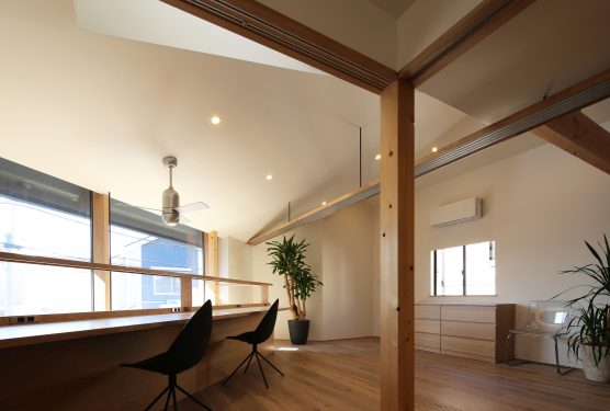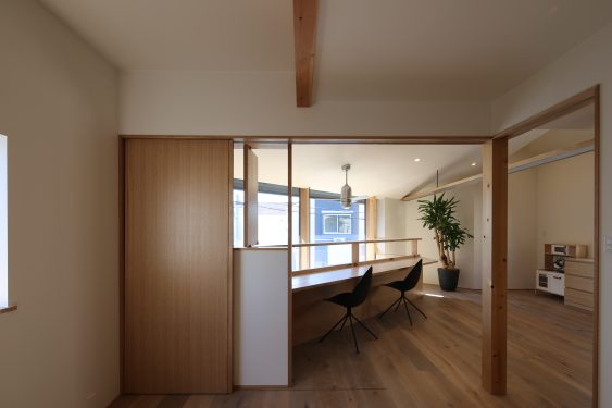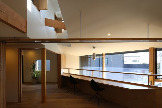 圧倒的な開放感のこちらのスペースでは、ご主人が在宅ワークしたり、お子様がお勉強やお絵描きを楽しんだり。