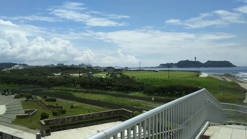 鵠沼海岸駅から徒歩10分の場所にある「鵠沼海岸」は、夏には多くの海水浴客で賑わいます。