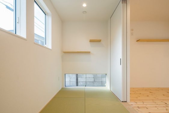 和室はDaIKENの和紙畳を採用。 デザイン性が高く、撥水性にも優れているので お手入れしやすい畳です。