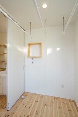 2階に浴室を設け 隣にランドリールームがございます。 両室を隣接させることにより 家事動線が短くなり効率よく家事をこなすことができます。