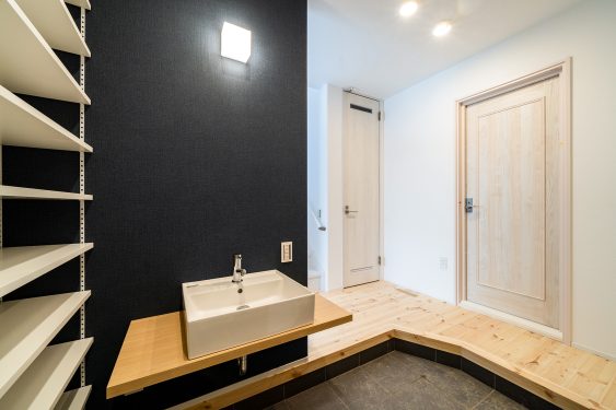 玄関ホールにミニ手洗い。外からの菌を室内に持ち込まないよう、設置する方が増えています。