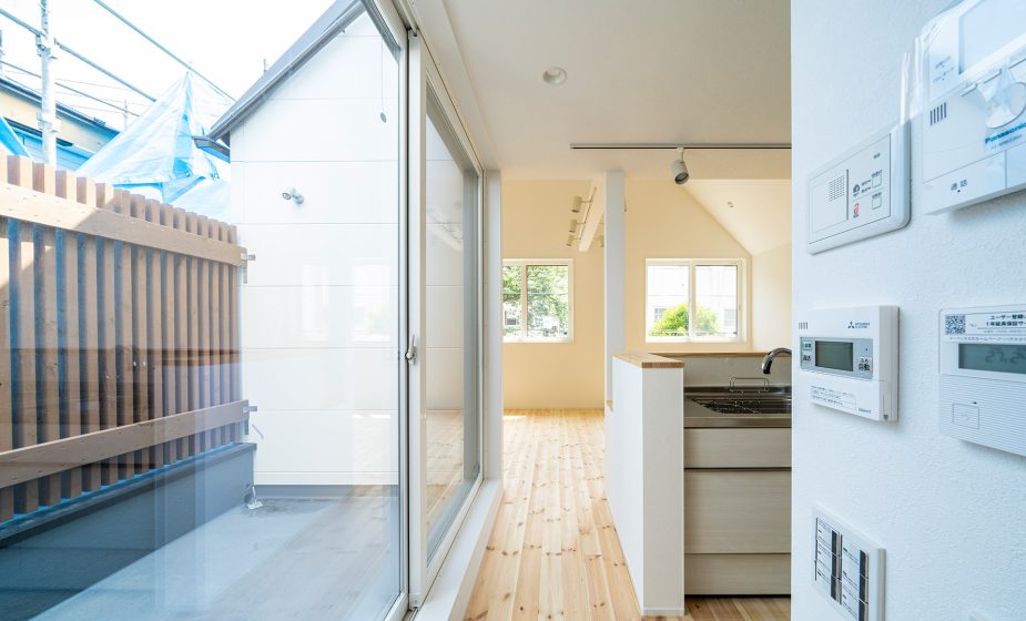 1階は主にお母様世帯。2階がお施主様ご夫婦の生活スペース。家中明るい間取りをご希望されていました。弊社お馴染みのスタイル、simple noteの原則により、2階には中庭を設けることになりました。仕様に関しては、YouTubeの講座で深めた知識を基にご希望されている仕様と、弊社が標準としている仕様をカスタマイズしながら決定していきました。お施主様による、現代らしい最新の家づくり。オール電化、高気密高断熱、第一種換気システムの採用と、非常に高性能な住宅が誕生いたしました。