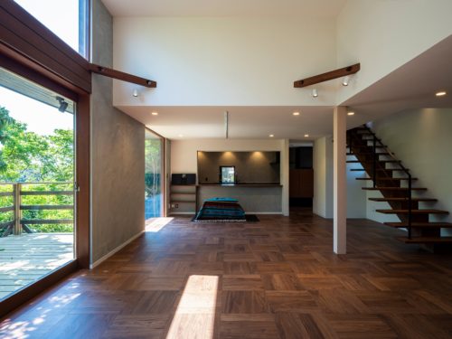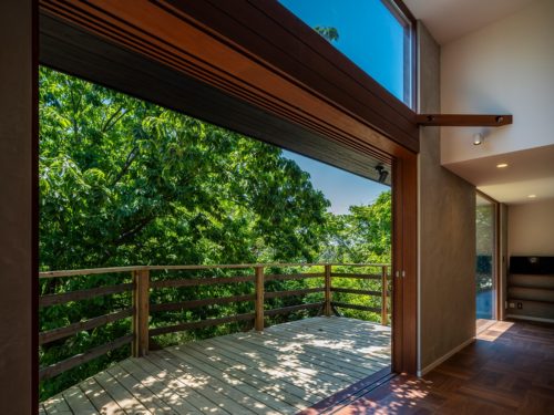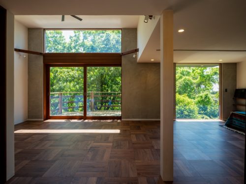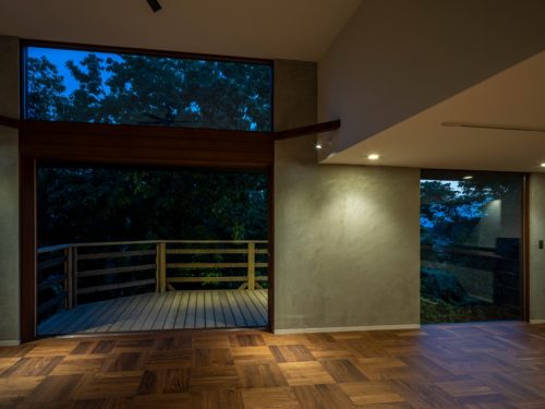 景観デザイナーとして有名なとよだみき様とのコラボ企画です。 こちらの建物は福祉デイサービスとして近隣の方にご利用していただく施設となります。 見どころはリビングからフラットに繋がるウッドデッキへの開口と相模湾を眺める大開口です。 鎌倉山の豊かな自然を借景に取り込み心地よい良い風が通り抜ける快適な空間が仕上がりました。