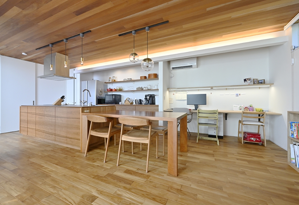 ワークスペース奥様のワークスペースとして1階キッチンの隣に、お子様と一緒に並んで使えるカウンターを造作。