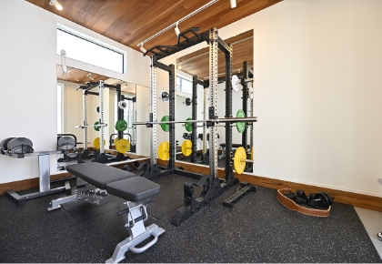 ジムスペース基本的なトレーニング設備を整えたジムスペース。「1日あたりの時間は短く、回数は多く」というように、体に負担をかけ過ぎずフレキシビリティのある使い方も可能。
