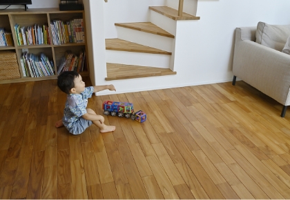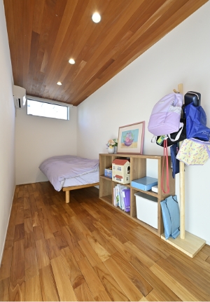 子ども部屋リビングに隣接した4.5畳の子ども部屋。1階にあれば学校から帰ってすぐ荷物を置くことができ、居心地の良いリビングで過ごす時間も自然に増えるはず。