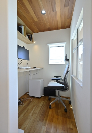 2階書斎2階書斎はご主人のワークスペース。仕事中も家族の気配を感じてられるように、吹き抜けに面した場所を選びました。