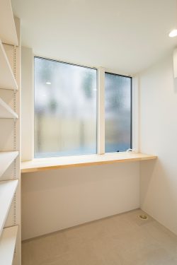 フルタイムでの仕事をこなしながら日々の家事もこなすのは大変なことです。少しでも負担を減らせるように、家事を効率的に行うための家事室をつくりました。充実した造作棚や作業台で、洗濯物の片付けやアイロンがけなどもはかどります。