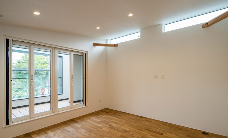 吊り押し入れは、押し入れの下も使え、限られたスペースを最大限有効に活用できます。小さな地窓もワンポイントとなり、お部屋に明るさもプラスしてくれています。