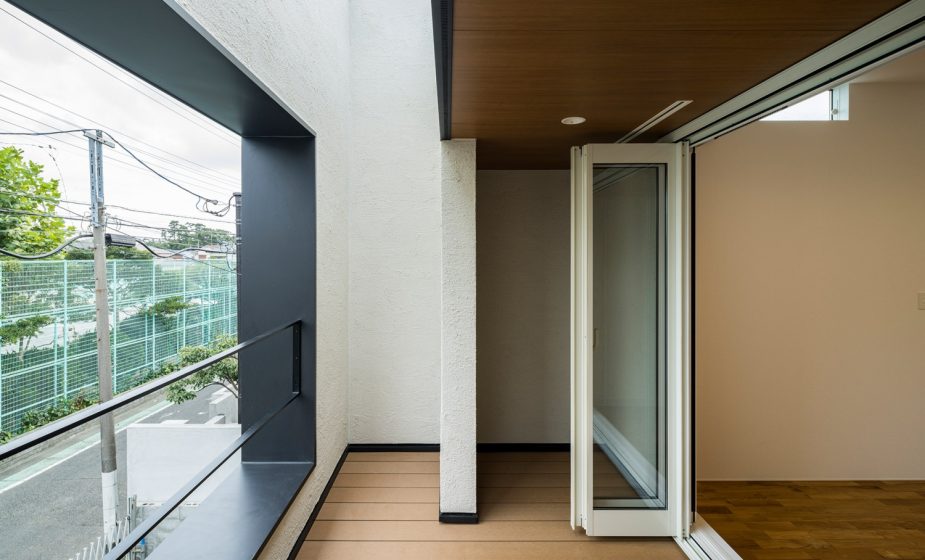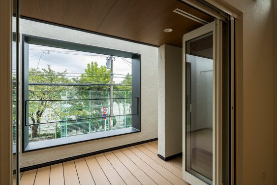 コンパクトな土地では2階リビングにすることで、室内に十分な明るさを取り込み、開放的な空間を実現できます。目の前の学校の緑を借景として楽しめ、折り戸の窓を開放すればベランダと一体となり、アウトドアリビングとして楽しみ方が広がります。オーナー様が選ばれた土地の特長を活かし、殺風景になりがちな住宅街の景色に彩を加えるプランニングとなっております。