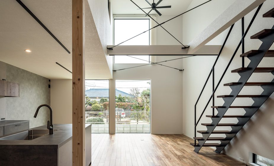 仕切りの壁や柱がない大きな空間をつくれるのは、日本古来の伝統工法を発展させた「在来工法」により、柱や梁などの軸組みで支える構造だからです。裏付けとして構造計算を経て、大空間があっても耐震等級3の強い建物を可能にしています。