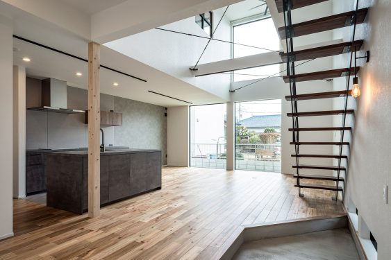 お施主様は室内空間に圧倒的な開放感を追求され、大きな吹き抜けと、仕切る壁や柱がほとんどない大空間のLDKを実現。耐震強度もしっかりと確保するべく設計され、気持ちのいい毎日、心地良さを感じる湘南らしい家が完成しました。