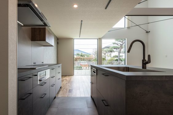 南側に面するLDKの窓の向こうには、隣地のゆったりとした空間が広がっています。その景色を借景として、一枚の絵のように楽しめるよう大きな窓を設け、外とつながる心地良さを演出しています。