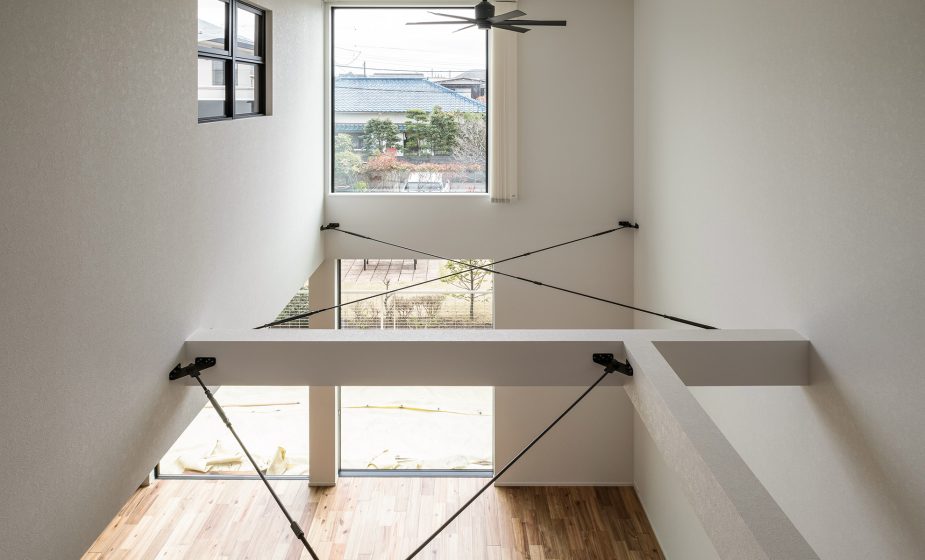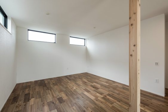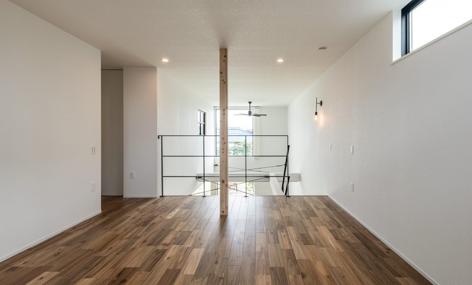 階段を上がったところのスペースです。フリースペースとして使ったり、お子様達が大きくなってきたら間を仕切って個室にもなります。つくり込み過ぎず、フレキシブルな間取りにすることで様々な可能性に対応します。