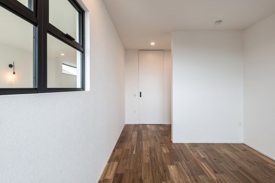 2階の主寝室には、LDKとつながれるお洒落なデコ窓があります。お洒落なだけでなく、採光・通風を確保できます。それぞれの空間で過ごしながらも、気配を感じたり、吹き抜けへの開放感も感じられる良さがあります。