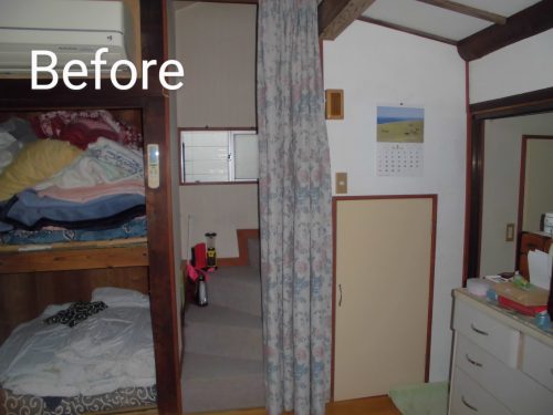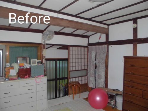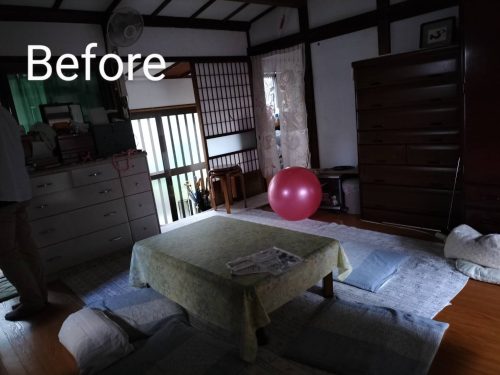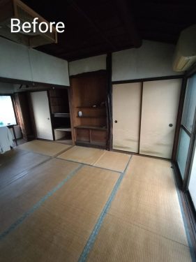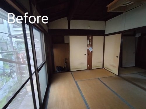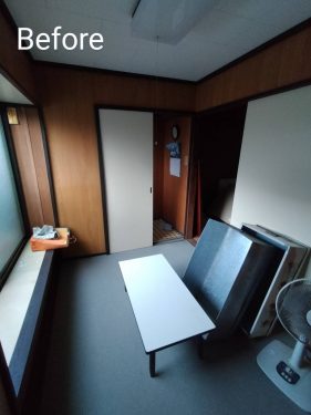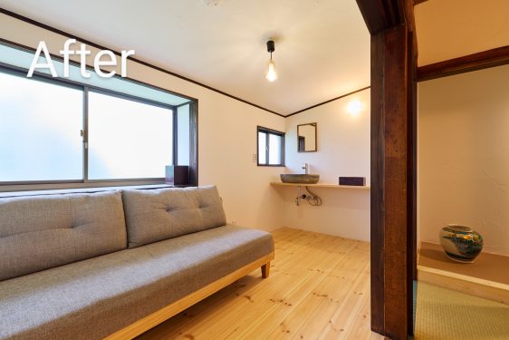 建物の真ん中あたりの玄関兼洋室は、玄関ドアを撤去し、客室にリノベーションしました。