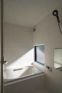 ユニットバスではなく、在来工法の浴室です。壁と床をFRP防水とトップコートで仕上げています。素朴で味わいのあるお風呂ですね。