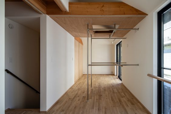 「上の間」と呼ばれる二階の空間には大容量のハンガーパイプを備えたウォークインクローゼットがあります。
