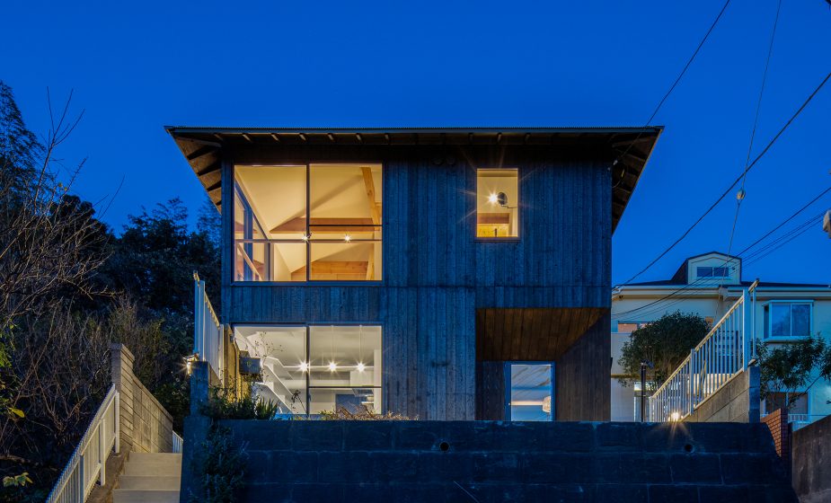 外壁の焼杉は光の当たり方で表情が豊かに変化します。