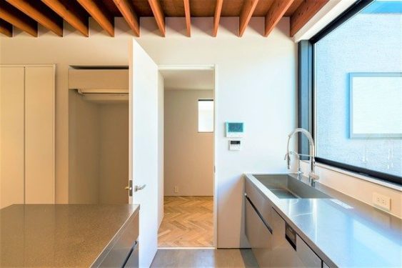 居心地の良さとハイグレードなセンスを共存させた デザイナーズ住宅は 外からは想像できない解放感! 美しい化粧梁、リズミカルなヘリンボーンの床も この家の楽しい時を刻みます。