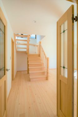 扉を開けると印象的な階段がゲストを迎えます