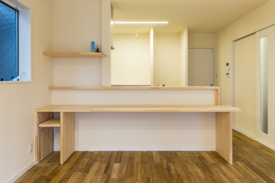 椅子を置けば、ワークスペースになります。 ここで今日のご飯のレシピを考えたり、奥様の趣味のスペースにしたりするのも楽しいですね。