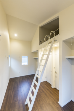 子ども部屋のロフトは、お子様がもう少し大きくなったときに、親に邪魔されない自由な空間があるといいなというお施主様の想いから造られました。