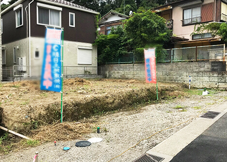 奥に向かって段差のある土地。ここにはH様邸を含め、現在3棟が建っています。